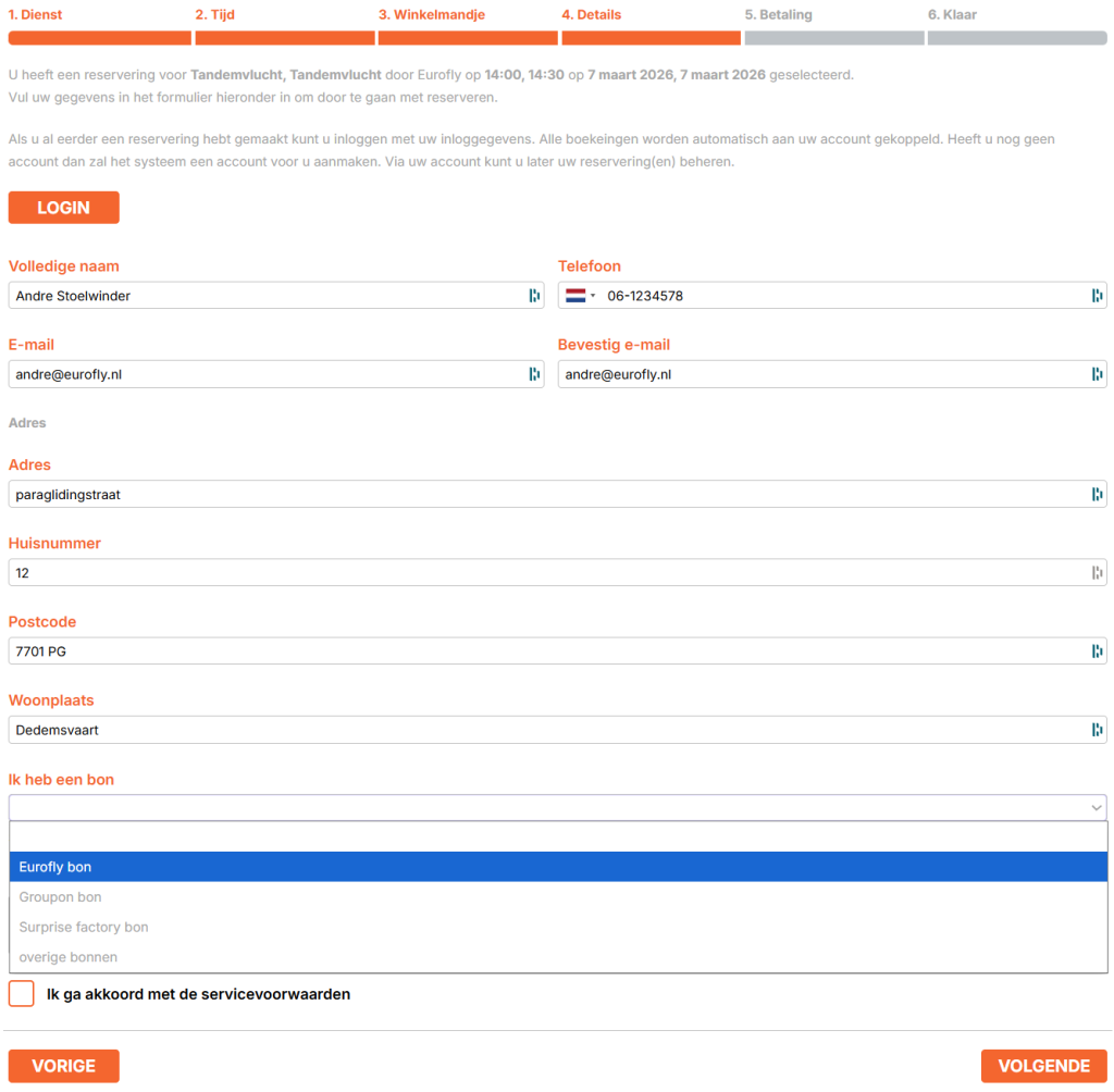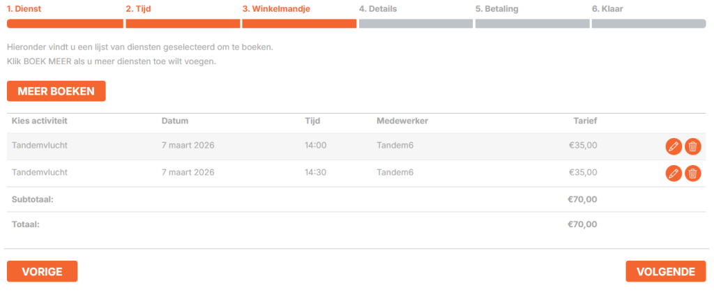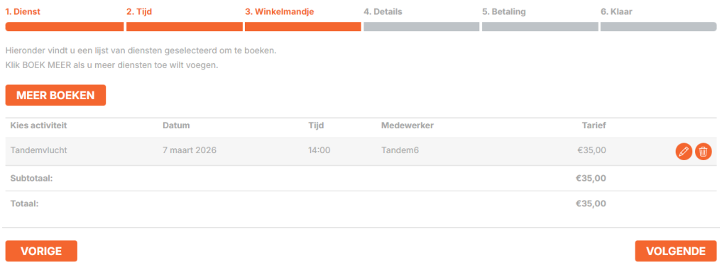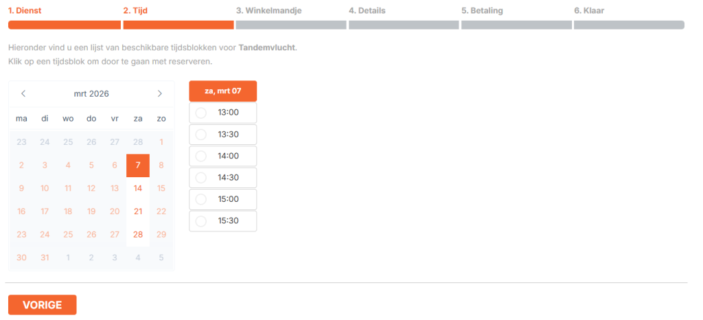 - Selecteer de dienst (Tandemvlucht)