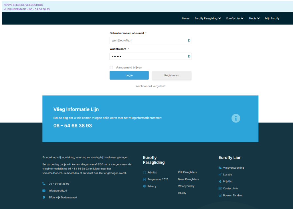Belt u op de dag welke u heeft gereserveerd altijd na 08:00 uur naar 06 – 54 66 38 93. U hoort dan op de voicemail of er die dag gevlogen wordt. Of kijk op de website naar de vliegverwachtings pagina.